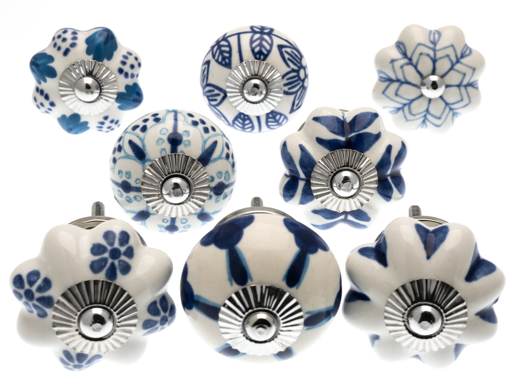 Cupboard Knobs in Mixed Blues Wardrobe Kitchen Pulls Pack of 8