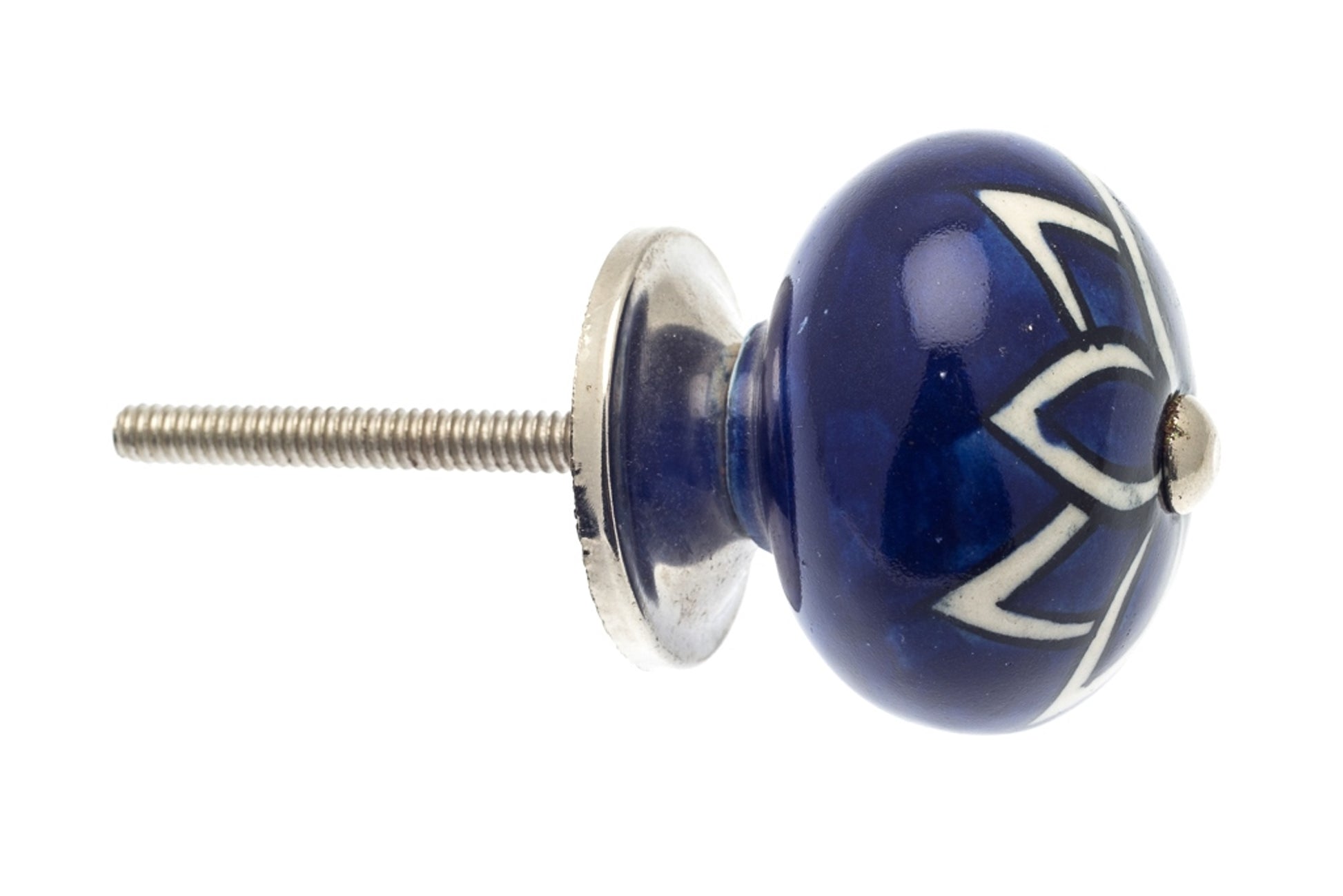 Round Ceramic Knob White with Blue Leaves 40mm